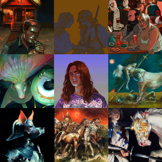 Dawid "SLAVIIIK" Janiak is a Polish comic artist and painter, specializing in digital fantasy art. He graduated in 2024 from the Gdańsk Academy of Fine Arts, completing his Master's degree diploma in the Painting Studio of Professor Maciej Świeszewski and the Mural Painting and Stained Glass Studio of Professor Jacek Zdybel.Since 2018, he has written and drawn the webcomic Nuclear Summer 1997, of which the Polish-language version of the first chapter was independently printed in 2019. He has also drawn various published comics, covers and illustrations, including work for the anthologies Rzeźzin 1 through 3, Cymelia, Mutagen Krackle 1 and 2, Advent20 and 21, and the novel Featherlight.He can be contacted regarding commissions or other work at [email protected].